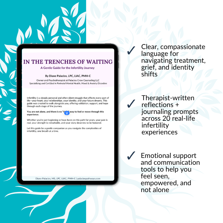 Whether you're navigating infertility, adjusting to life with a newborn, or juggling the demands of motherhood and work, Palacios Pathways offers therapist-designed digital guides and self-paced tools to support you—especially in the moments between therapy sessions, or before you're ready to start.