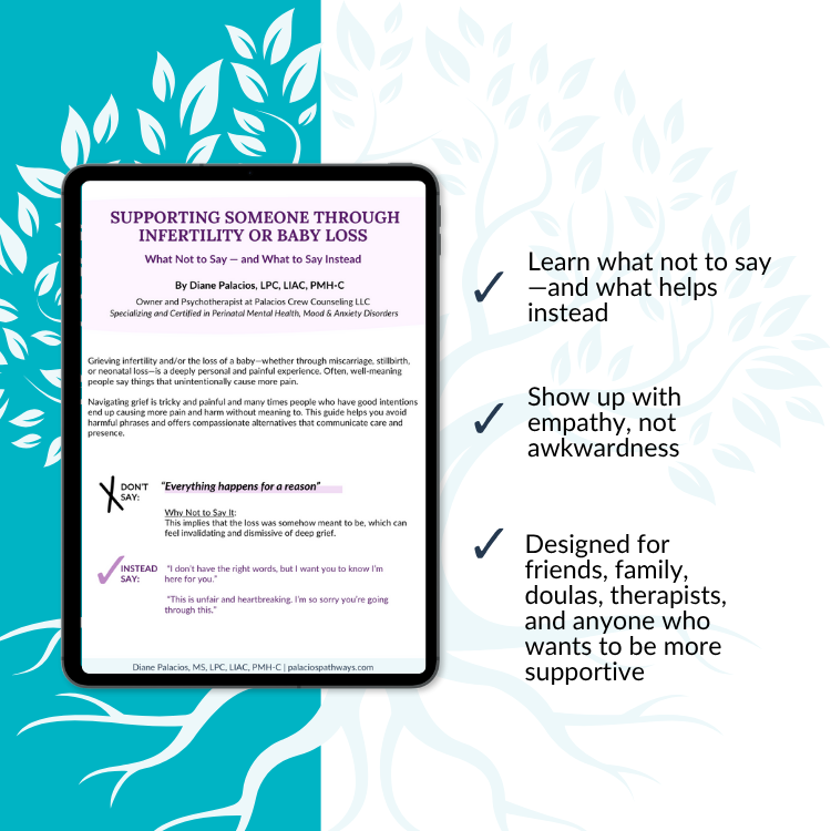 Each guide is written by Diane Palacios, a licensed perinatal mental health therapist, who created these resources after years of walking with women through the pain of infertility, pregnancy loss, and postpartum challenges.